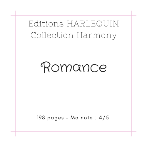 Je découvre avec ce roman la nouvelle collection Harmony, qui regroupe des titres où tendresse, amour et romantisme sont mis à l’honneur. Je ne suis pas du tout déçue par cette découverte. Une histoire simple et efficace où les mots s’écoulent paisiblement. Bien sûr des rebondissements fleurissent ici et là, rythmant une romance émouvante. Des personnages façonnées par leurs douleurs respectives où le passé est présent et pressant. La passion et l’émerveillement s’intensifient au fil des pages. Les larmes et l’incompréhension s’y joignent. Une histoire où la frénésie n’a pas sa place. J’ai pris le temps de la savourer et ça fait du bien ce petit moment de tendresse où finalement l’amour rayonne de mille feux.