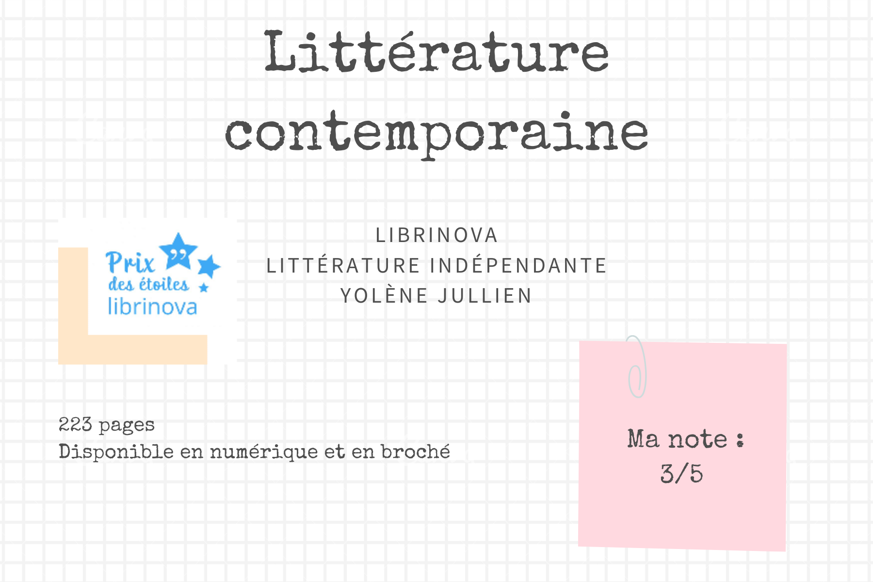Yolène Jullien signe un très beau roman où elle met avec finesse en exergue les sentiments de ses personnages. Elle aborde le thème des relations amoureuses passionnelles et parfois toxiques avec une extrême délicatesse. Même si parfois, j’ai eu cette impression de tourner en rond, je comprend que l’auteure a voulu mettre l’accent sur ce tourbillon de sentiments dévastateurs. Elle aborde aussi le sujet du goshting « qui est l’acte qui consiste à mettre fin à une relation avec une personne en interrompant sans avertissement ni explication toute communication et en ignorant les tentatives de reprise de contact de l’ancien partenaire. Wikipédia » Une solution radicale qui peut détruire les personnes qui en sont victimes. Un premier roman prometteur qui traite d’un sujet difficile et d’actualité.