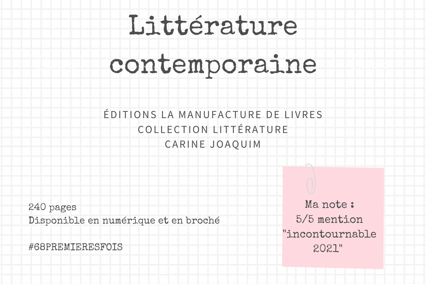 Carine Joaquim nous engouffre au cœur d’un roman puissant, nous entraîne dans ces intimités amputées, nous bouscule sur nos aprioris. Un roman intransigeant porté par une plume qu’il est tout autant. Un thème moderne mis en exergue par des personnages éblouissants, amers et captivants. Tableau parfaitement imparfait d’une esquisse sociale, conte moderne, où les corps deviennent ces étrangers, maîtres des maux et des préjugés. Un immense coup de cœur pour ce premier roman de Carine Joaquim qui a su me surprendre, et bien au-delà.