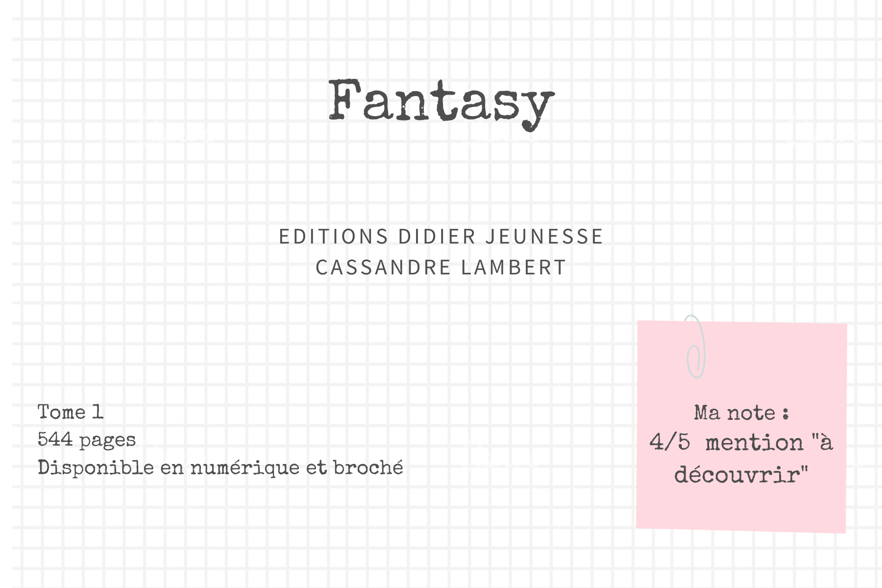 Cassandre Lambert signe un roman fantasy d’une beauté sans égale. Des paysages à couper le souffle, des rebondissements haletants et un enjeu de taille. Des destins tout aussi différents, déconcertants que rafraîchissants. Un page turner au cours duquel il vous sera impossible de lâcher prise. De l’énergie à foison, un scénario surprenant, des personnages charismatiques, une quête extraordinaire et ce n’est que le début. Confrontés à la beauté et à la méchanceté, nos apprentis héros vivent une aventure haletante. Vous l’aurez compris, j’ai adoré. Un petit moment de flottement au départ, le temps que tout se mette en place, et hop ! une fois les présentations faites, place à une histoire de dingue. J’adore être enthousiaste à ce point !